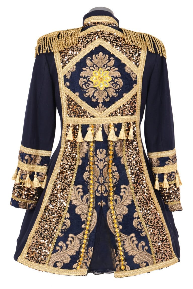 - Luxe dames carnavalsjas in donkerblauw met gouden details