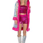 Luxe jas pailletten roze