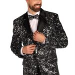 🎩 Glitter Colbert – Luxe Zilveren Paillettenjas voor Heren