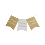 Met deze goud/wit party vlaggen banner maak je een goede sfeer op een feestje. Door de gebruikte kleuren hebben deze banners een luxe maar toch feestelijke uitstraling! Combineer ze met bijpassende ballonnen en swirls. Ook maken we cadeau ballonnen informeer ons voor meer informatie.