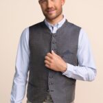Het traditionele gilet Vitali heeft een subtiel sierpatroon dat het klassieke ontwerp een verfijnde en elegante uitstraling geeft. De discrete ronde halslijn past harmonieus in het elegante totaalbeeld en benadrukt de hoogwaardige uitstraling van het gilet. De elegante knoopsluiting voegt een geraffineerd accent toe en geeft het gilet een speciale touch. Het ontwerp wordt afgerond met een praktische borstzak, die zowel functioneel is als de elegante look vakkundig afrondt.
